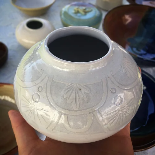 Lindsey took drawing and ceramics at Bear River with Ms. Laughlin. Since taking a Sierra College ceramics class with Richard Hotchkiss in 2009, throwing on the wheel has been an ongoing practice of hers. With Professor Hotchkiss as a mentor and inspiration, she took various ceramics classes in Nevada County and continues to create in her small home studio. She enjoys making dinnerware and experimenting with inviting shapes that feel good to the touch and bring comfort to those who use it.